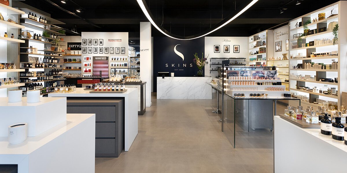 We heten je graag van harte welkom in de unieke boutique van Skins gevestigd in Eindhoven. Deze open en transparante winkel is mooi licht en heel overzichtelijk ingedeeld. Ontdek onder andere de bijzondere parfums van DIPTYQUE, BYREDO en Kilian, de heerlijke huidverzorgingsproducten van Aesop, Sunday Riley en Susanne Kaufmann en de prachtige make-up producten van Laura Mercier en Westman Atelier. Ben je op zoek naar specifieke merken of producten, bel dan naar deze boutique om te controleren of dit op voorraad is.
